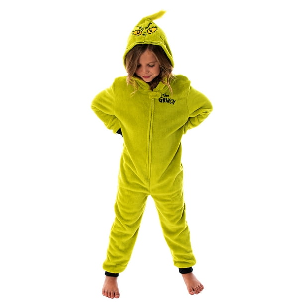 Dr Seuss Kids The Grinch Hooded Union Suit Sleeper Pajamas 10 12 Walmart Com