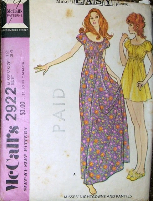 Mccall S 6242 Nightgown Pattern Bust 34 Just Vintage Home
